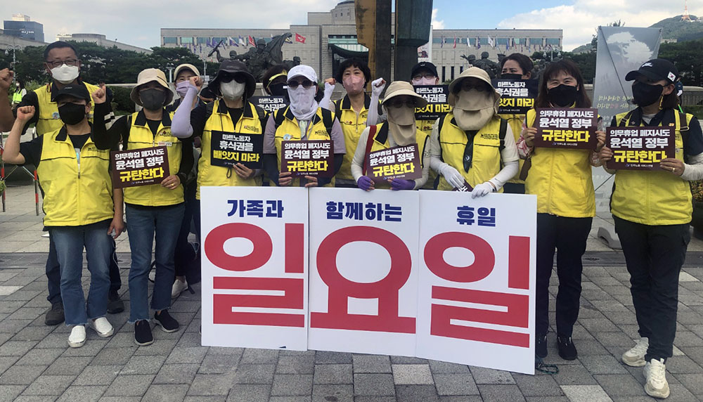 그러면서 ‘노조는 "2011년 법 개정으로 대형마트의 24시간 영업이 중단되고 매월 이틀간 의무 휴업일이 보장돼 왔지만 정부는 근로조건을 더 후퇴시키려고 한다."라며 "대기업의 이윤추구만 아니라 중소상인, 노동자들과의 상생을 고려해야 한다."라고 역설했다.’라고 덧붙였다.